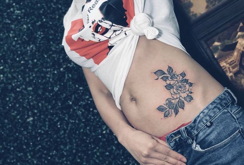 • T关于私处得爱!纹身图片_成品腹部清新字符图腾纹身图案