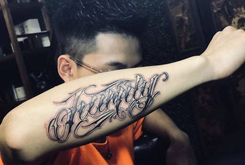 当前位置: 首页 >广东省广州市纹身店-東刺青纹身工作室纹身图案>花体英文~家人纹身图片