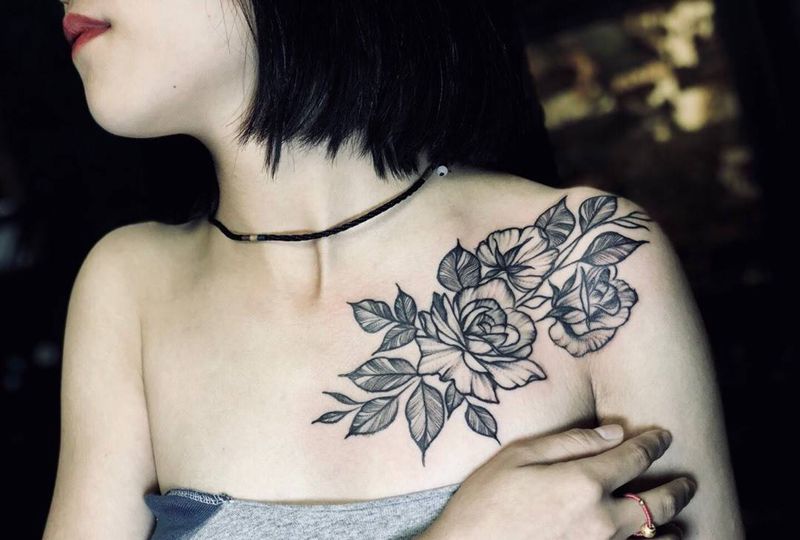 • 女性大花胸纹身_43张霸气漂亮的女性大花胸纹身图案作品