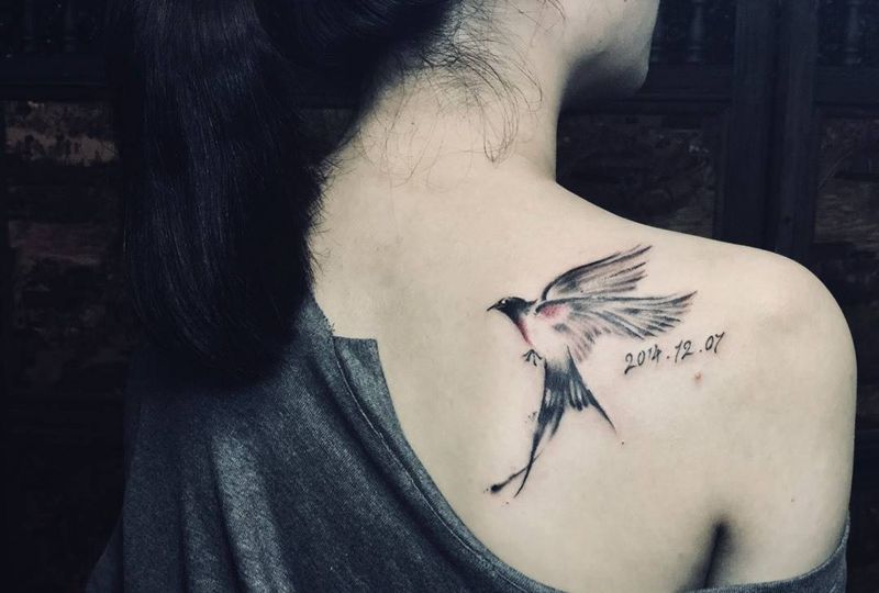 当前位置: 首页 >广东省广州市纹身店-東刺青纹身工作室纹身图案>水墨燕子纹身图片