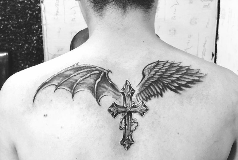 当前位置: 首页 >广东省广州市纹身店-東刺青纹身工作室纹身图案>天使•魔鬼纹身图片