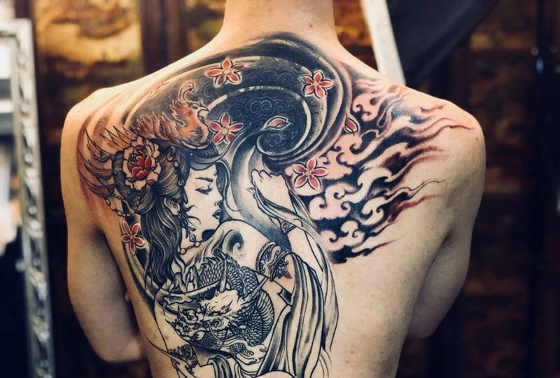 • T云龙九郎纹身图片_背部老传统云龙九郎纹身图案