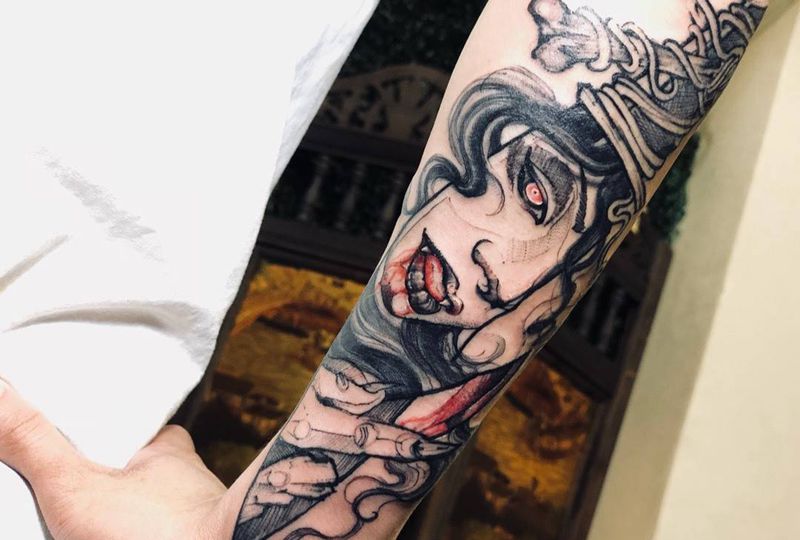 当前位置: 首页 >广东省广州市纹身店-東刺青纹身工作室纹身图案>临摹 吸血女王纹身图片