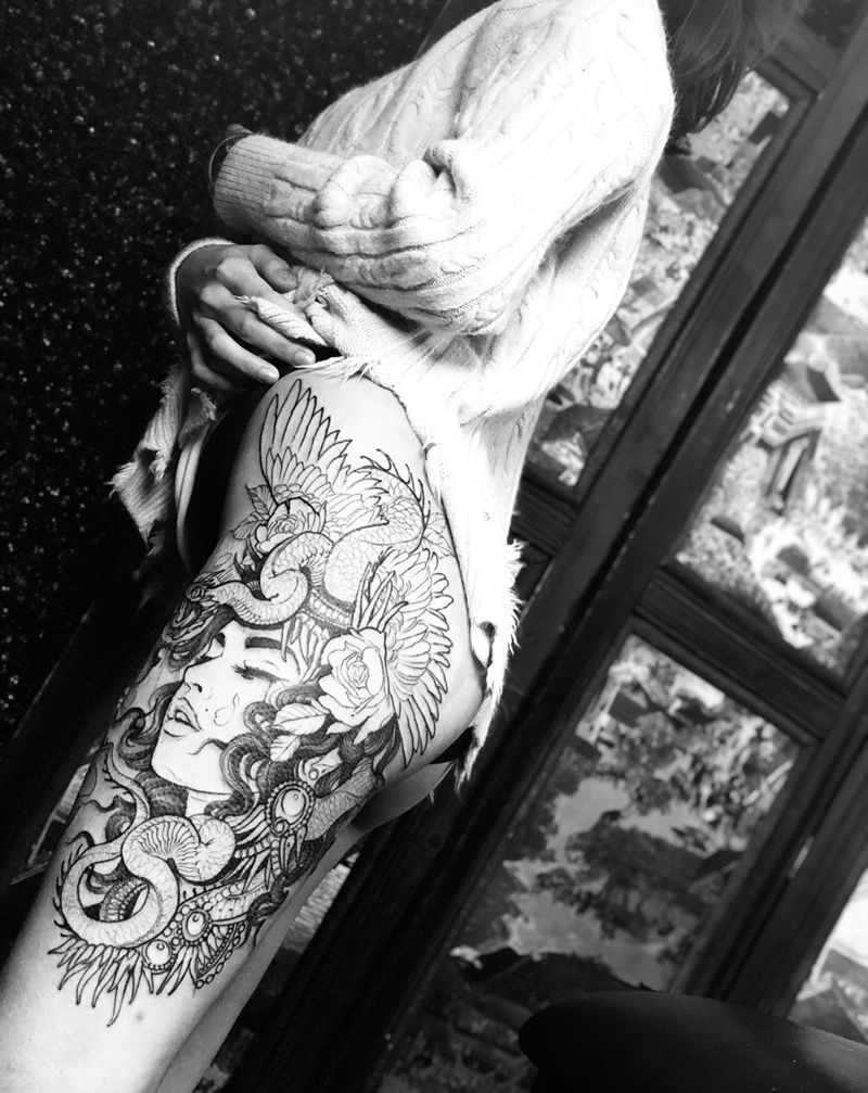 • 女性大花胸纹身_43张霸气漂亮的女性大花胸纹身图案作品