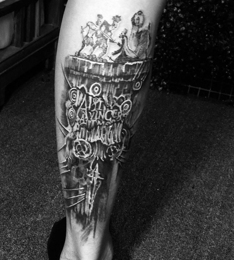 • T包小腿吹火男+阿多福纹身图片_腿部老传统新传统吹火男阿