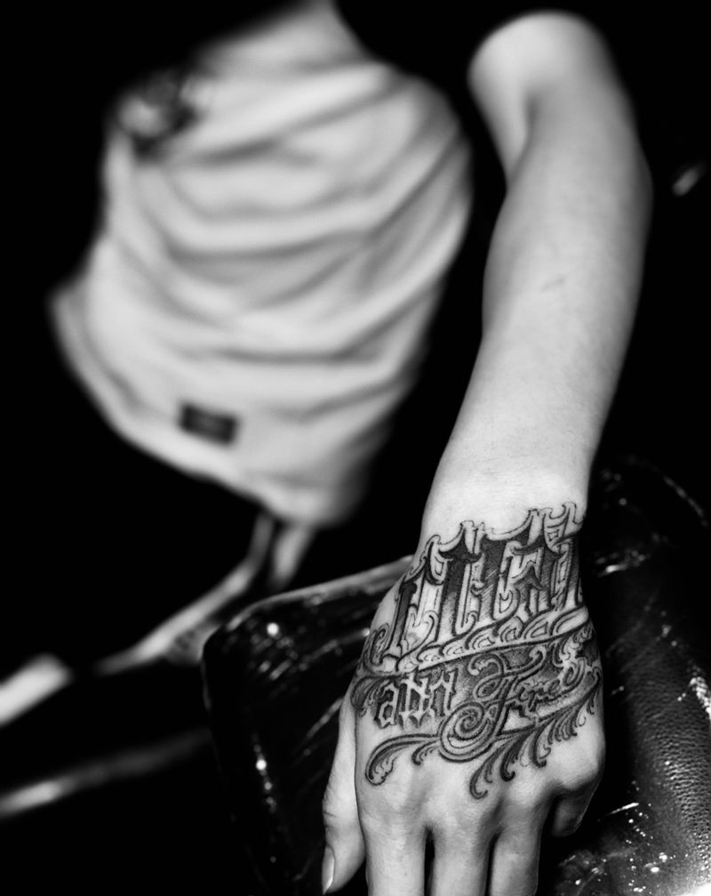 当前位置: 首页 >广东省广州市纹身店-東刺青纹身工作室纹身图案>手绘花体英文纹身图片