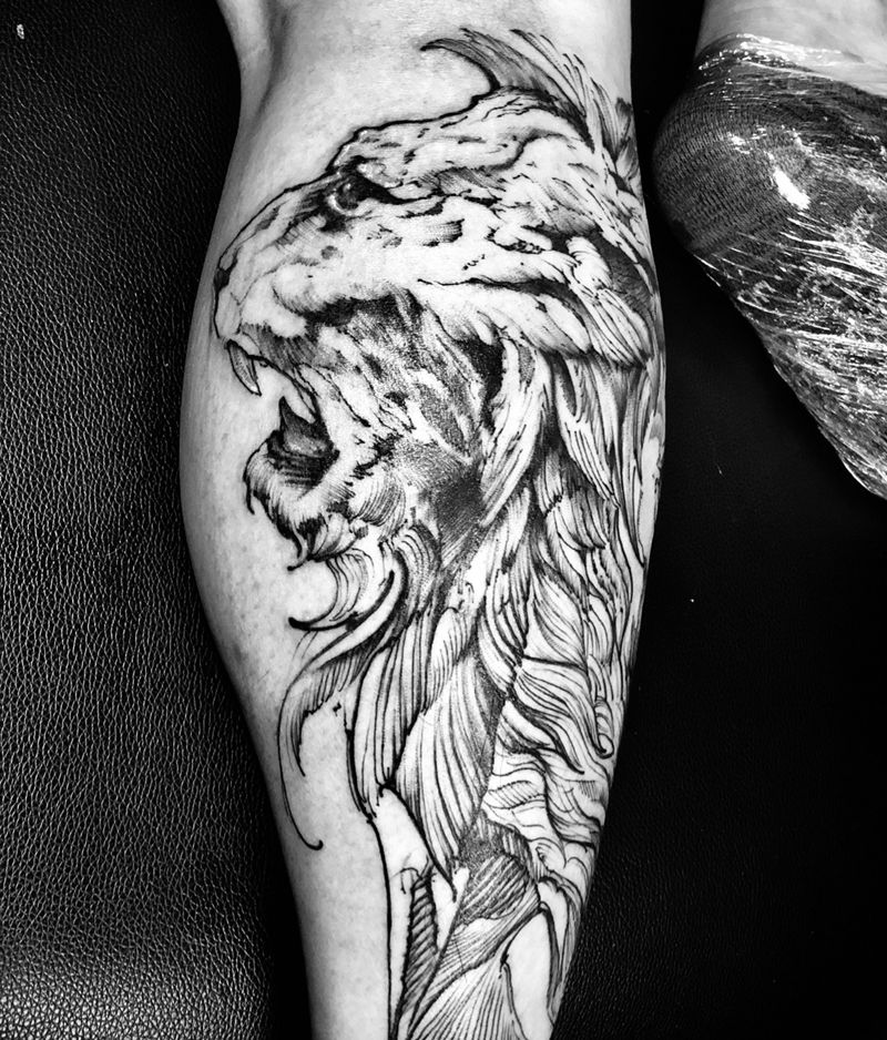 • T网红王老大花腿龙纹身图片_腿部新传统纹身图案