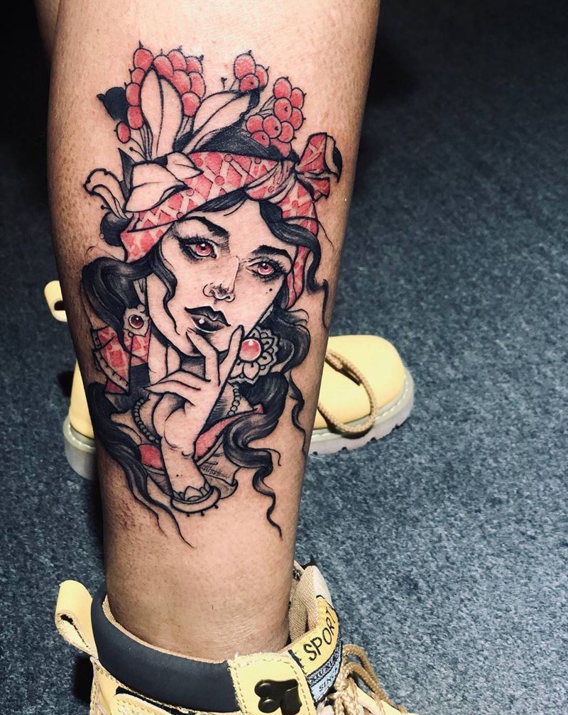 • T网红王老大花腿龙纹身图片_腿部新传统纹身图案