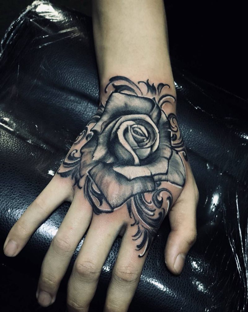• 手背潮流时尚的玫瑰花眼睛纹身图案