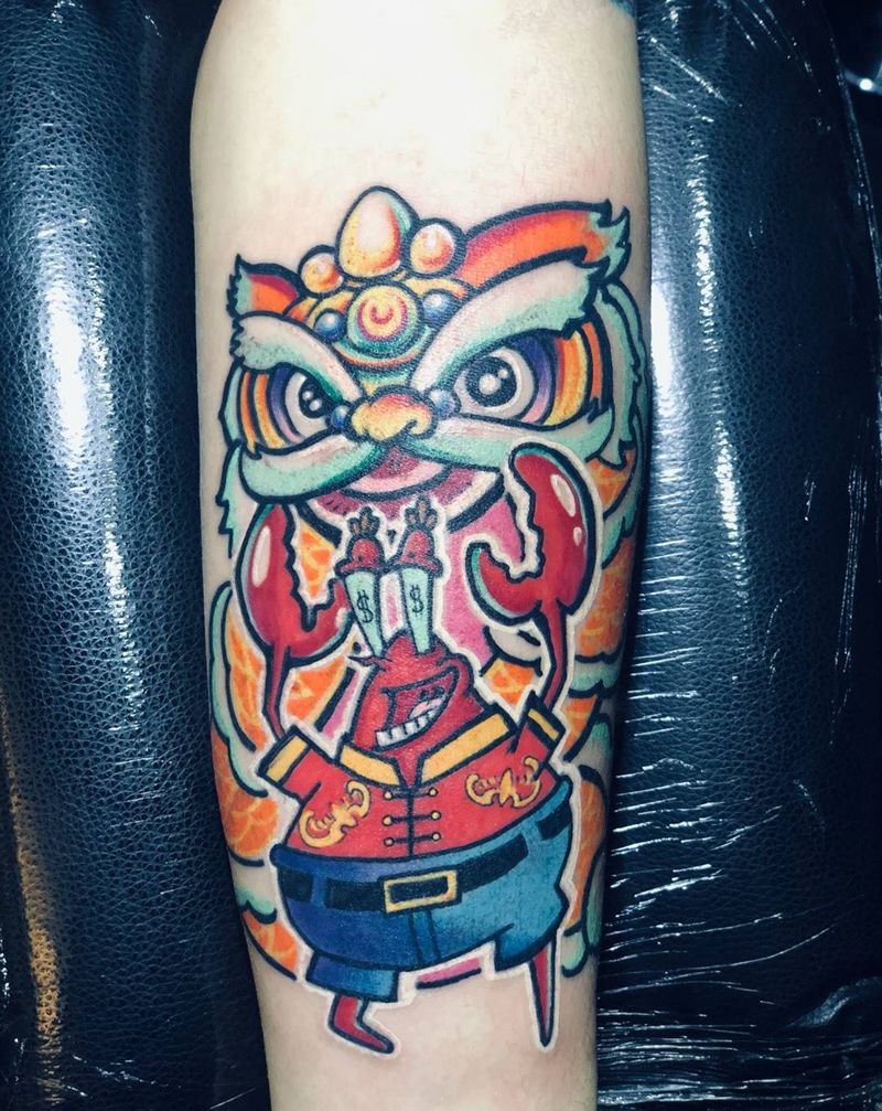 当前位置: 首页 >广东省广州市纹身店-東刺青纹身工作室纹身图案>舞狮的蟹老板很爱钱