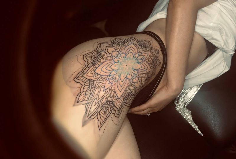 • 时尚性感的腹部莲花纹身图案