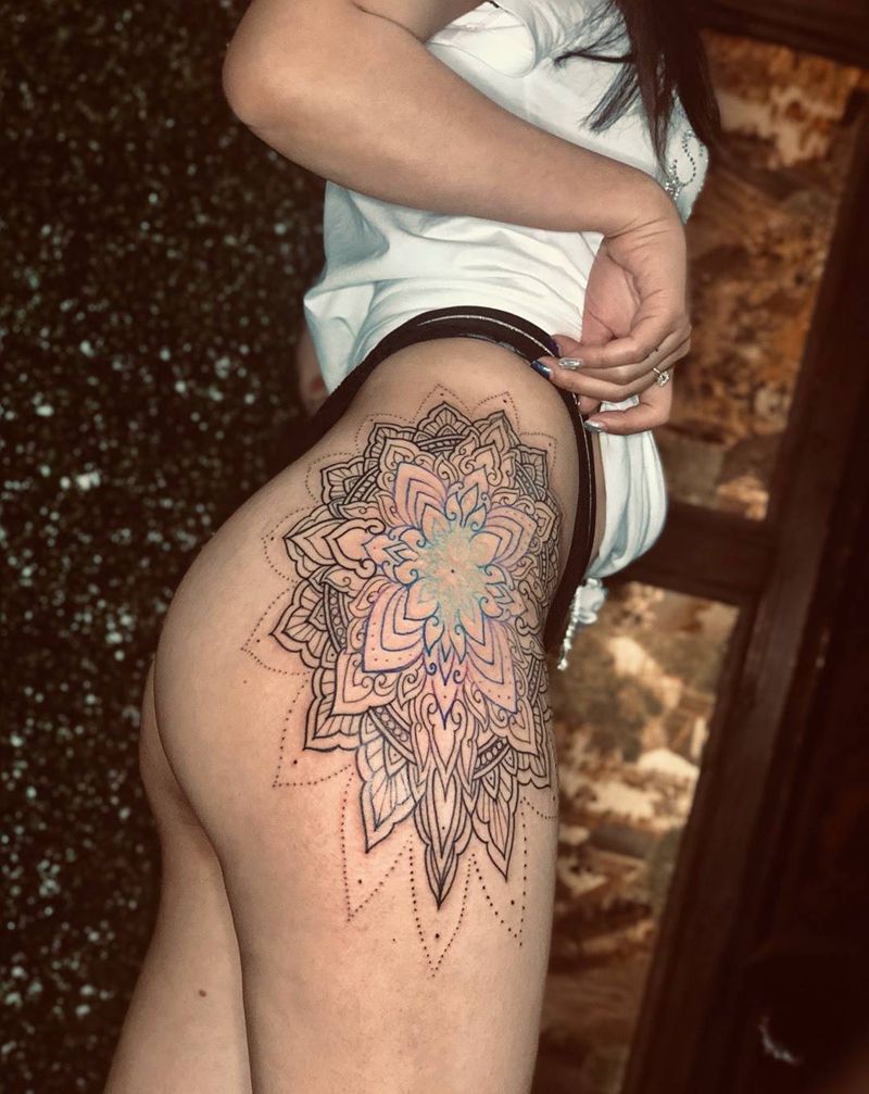 • 时尚性感的腹部莲花纹身图案