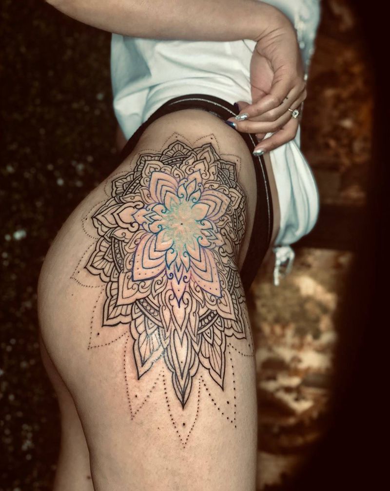 • 时尚性感的腹部莲花纹身图案