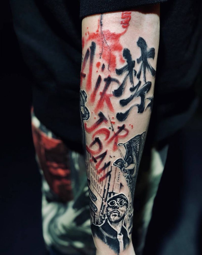 当前位置: 首页 >广东省广州市纹身店-東刺青纹身工作室纹身图案>花臂拼接纹身图片_手部手臂水彩水墨纹身图案