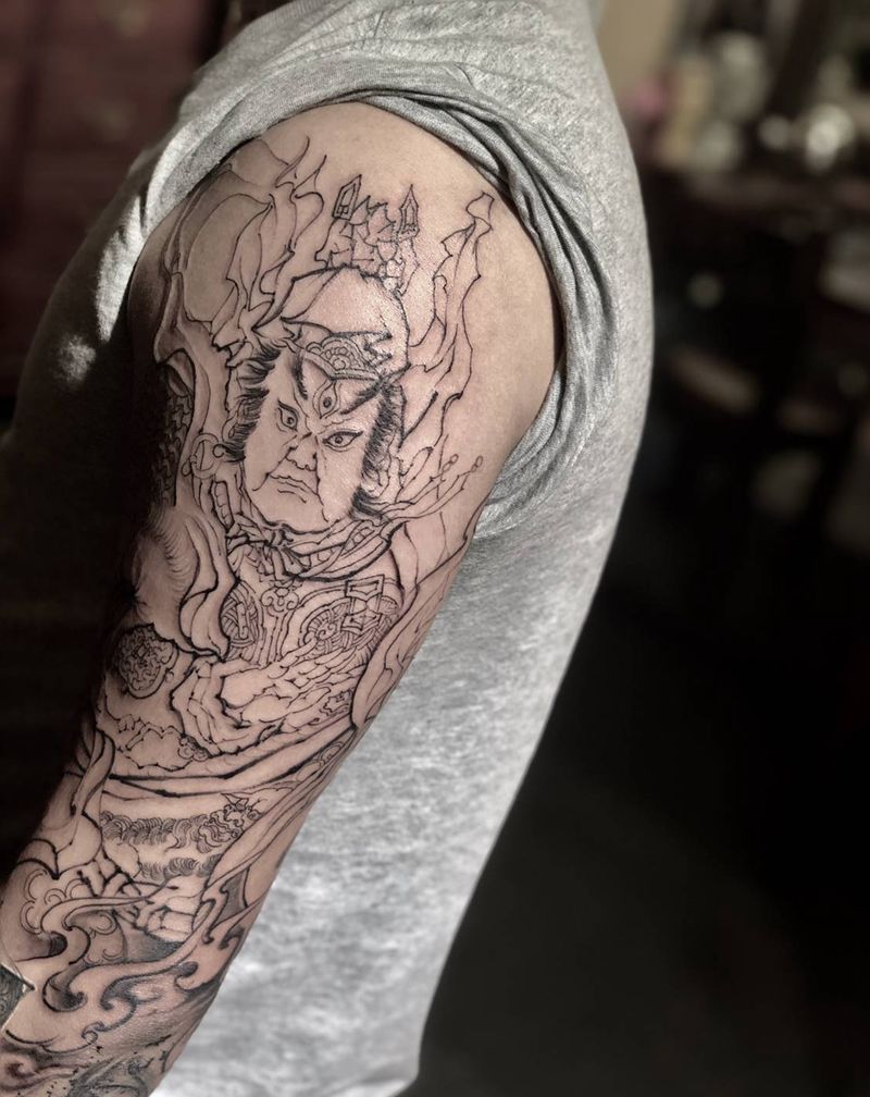 当前位置: 首页 >广东省广州市纹身店-東刺青纹身工作室纹身图案>二郎真君~临摹作品纹身图片_手臂新传统老传统纹身图案