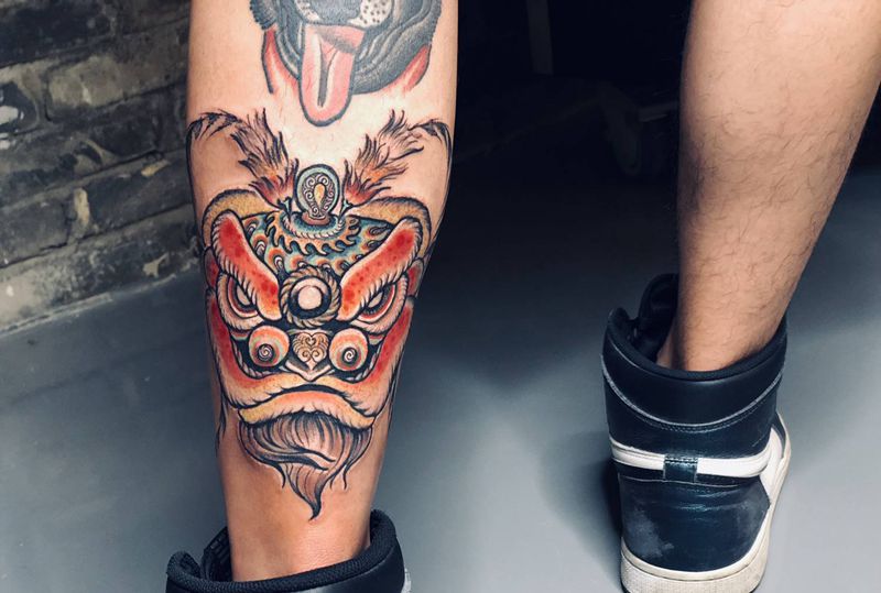 当前位置: 首页 >广东省广州市纹身店-東刺青纹身工作室纹身图案>原创醒狮纹身图片_脚部New School新传统中国风纹身图案
