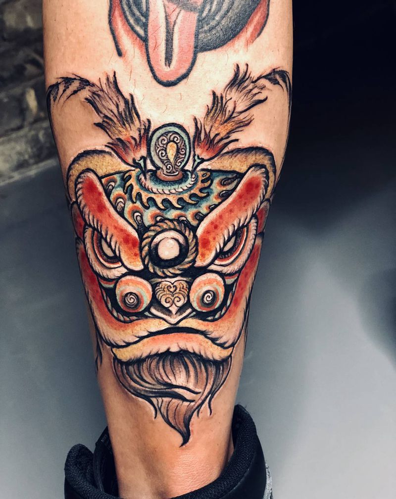 原创醒狮纹身图片_脚部New School新传统中国风纹身图案