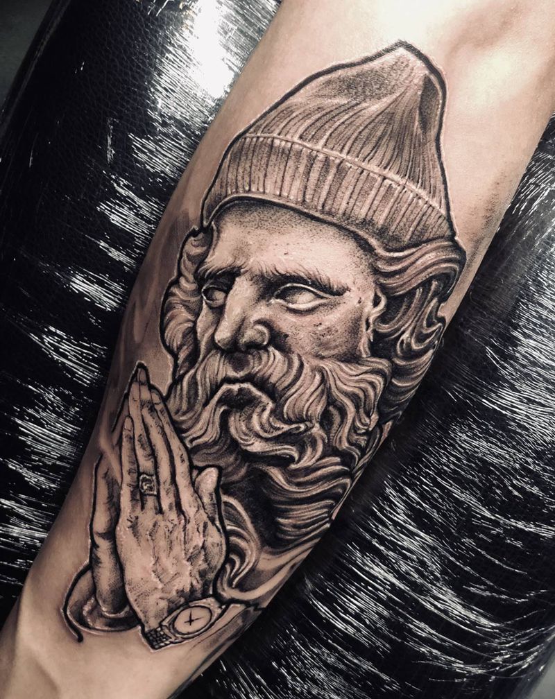 雕塑写实纹身图片_手臂点刺欧美写实纹身图案