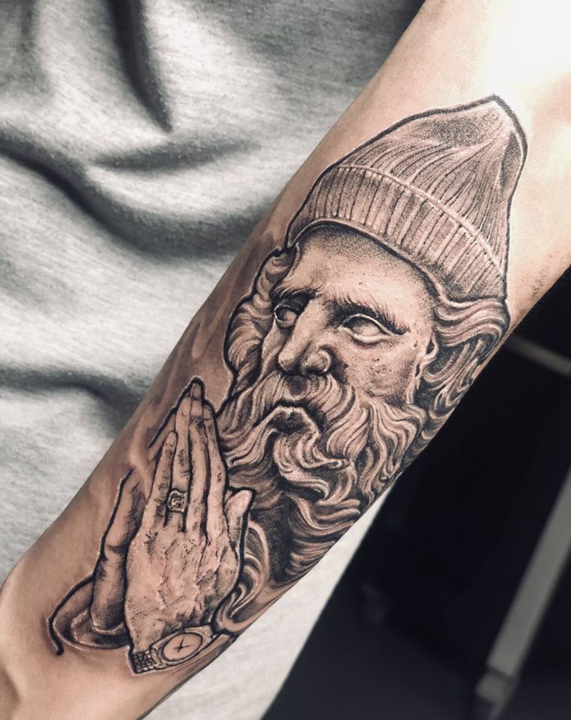 雕塑写实纹身图片_手臂点刺欧美写实纹身图案