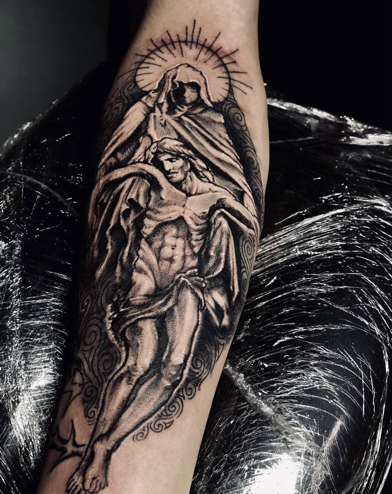 耶稣纹身图片_手臂欧美写实点刺纹身图案