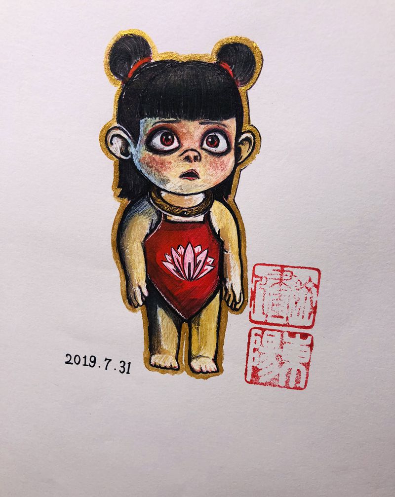 魔丸哪吒纹身图片_手臂水彩New School纹身图案