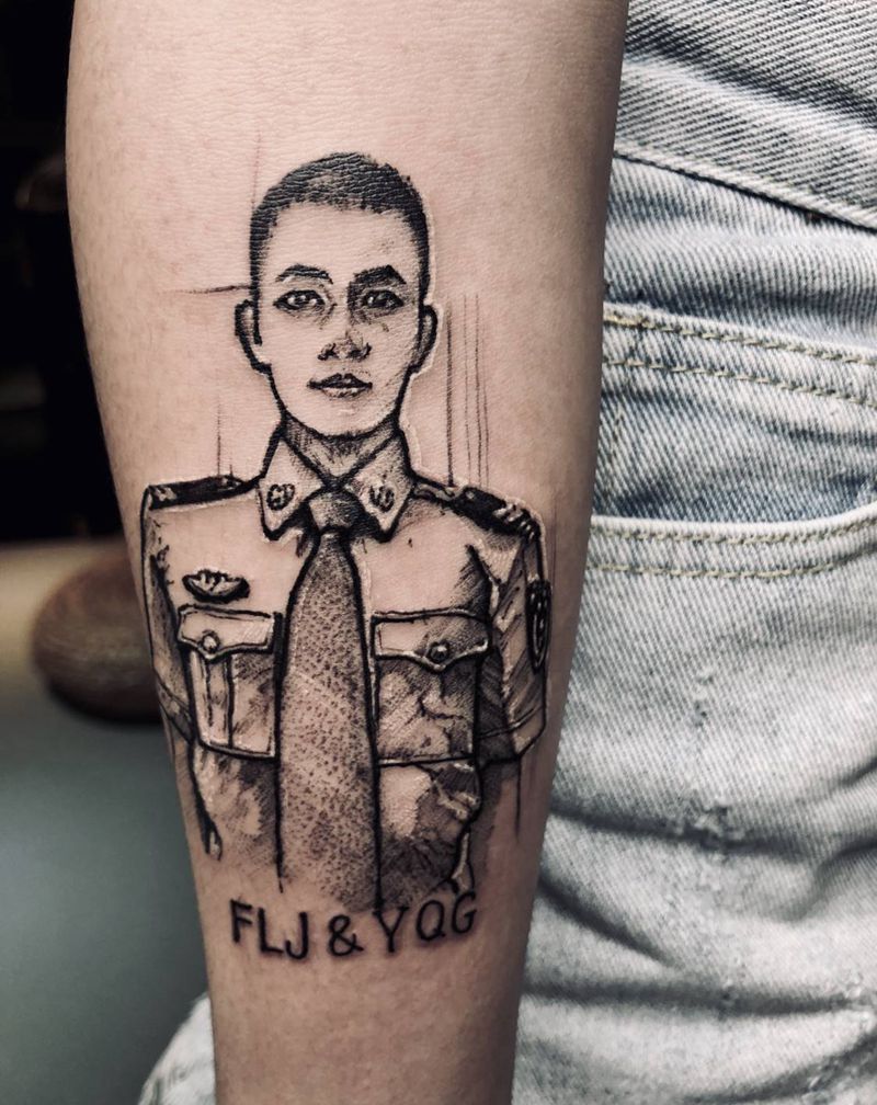 兵哥哥人物速写纹身图片_手臂欧美写实点刺纹身图案