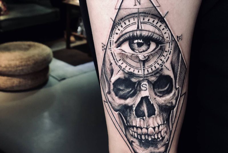 当前位置: 首页 >广东省广州市纹身店-東刺青纹身工作室纹身图案>骷髅纹身图片_手臂欧美写实点刺纹身图案