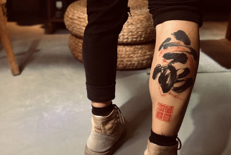 当前位置: 首页 >广东省广州市纹身店-東刺青纹身工作室纹身图案>水墨家纹身图片_腿部水墨老传统纹身图案