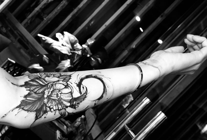 当前位置: 首页 >广东省广州市纹身店-東刺青纹身工作室纹身图案>个性素花纹身图片_手臂几何水墨纹身图案
