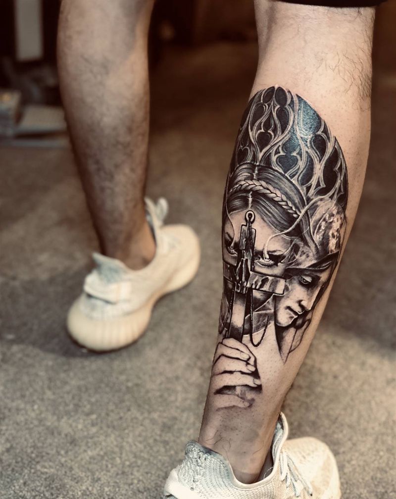 来自地狱的修女纹身图片_腿部欧美写实点刺纹身图案