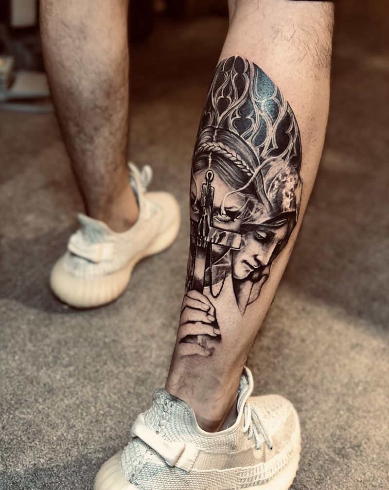 来自地狱的修女纹身图片_腿部欧美写实点刺纹身图案