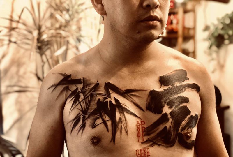 当前位置: 首页 >广东省广州市纹身店-東刺青纹身工作室纹身图案>旧图覆盖~水墨纹身图片_胸部水墨新传统纹身图案