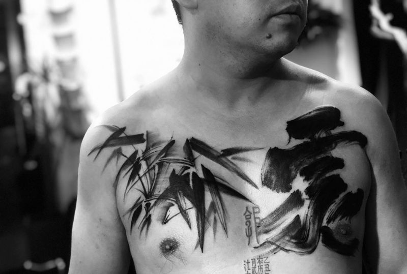 当前位置: 首页 >广东省广州市纹身店-東刺青纹身工作室纹身图案>旧图覆盖~水墨纹身图片_胸部水墨新传统纹身图案