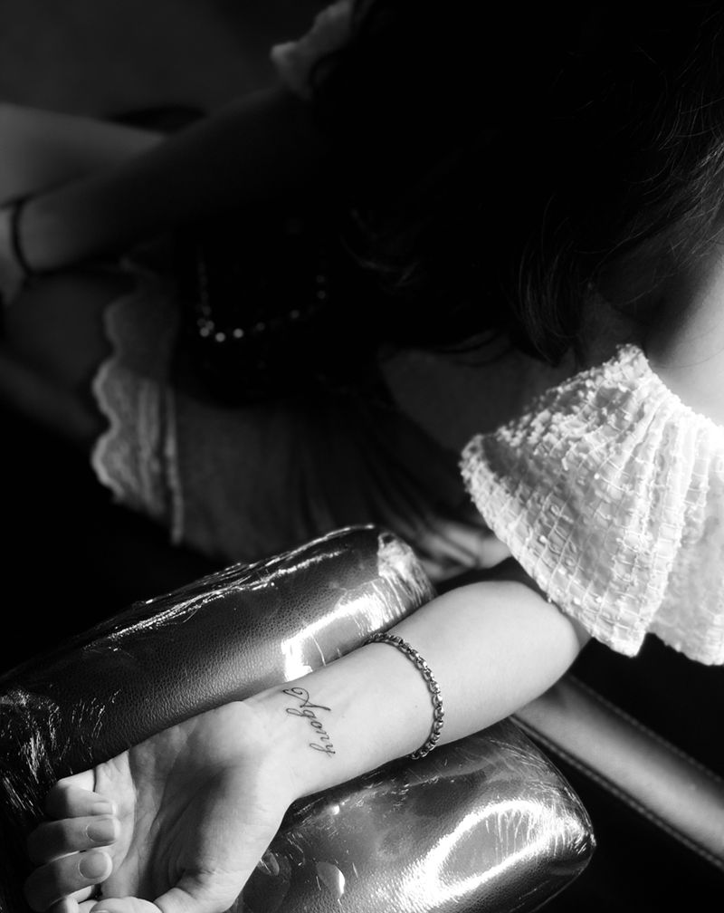 当前位置: 首页 >广东省广州市纹身店-東刺青纹身工作室纹身图案>小清新纹身图片_手臂花体字几何纹身图案