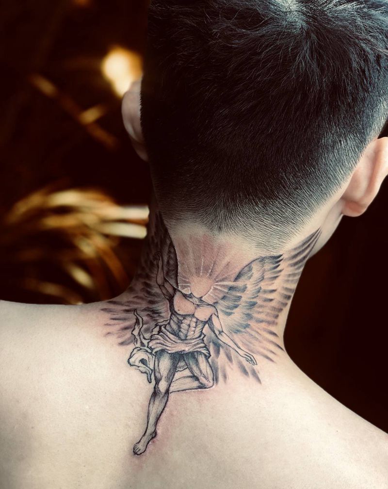 炽天使纹身图片_背部欧美写实点刺纹身图案