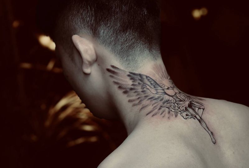 当前位置: 首页 >广东省广州市纹身店-東刺青纹身工作室纹身图案>炽天使纹身图片_背部欧美写实点刺纹身图案