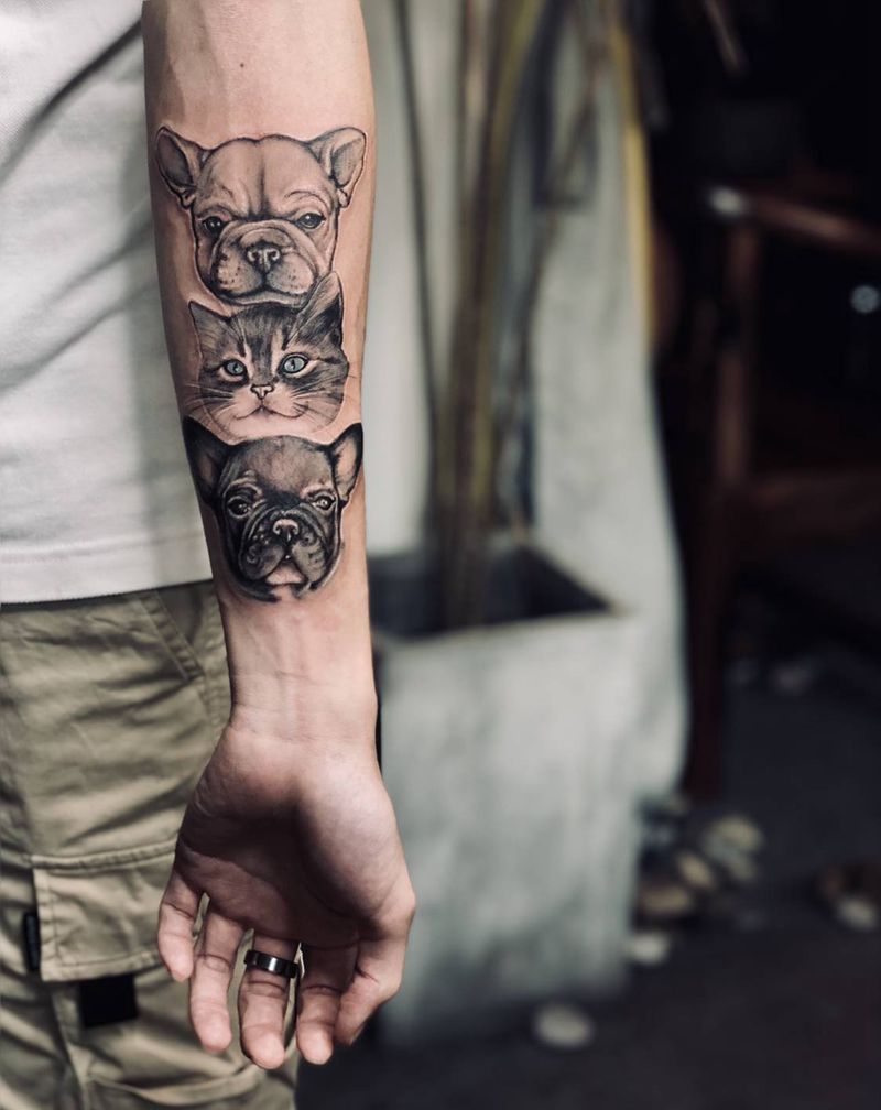 3个小宝贝纹身图片_手臂欧美写实点刺纹身图案