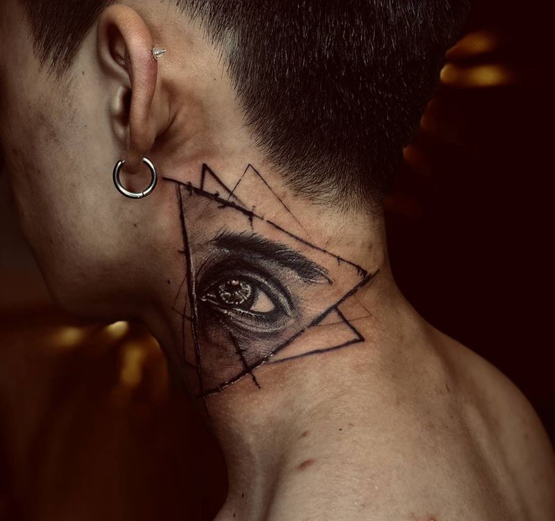 上帝之眼纹身图片_颈部欧美写实点刺纹身图案
