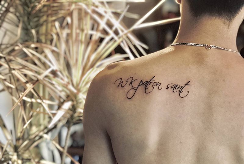 浩然出品纹身图片_背部点刺花体字纹身图案