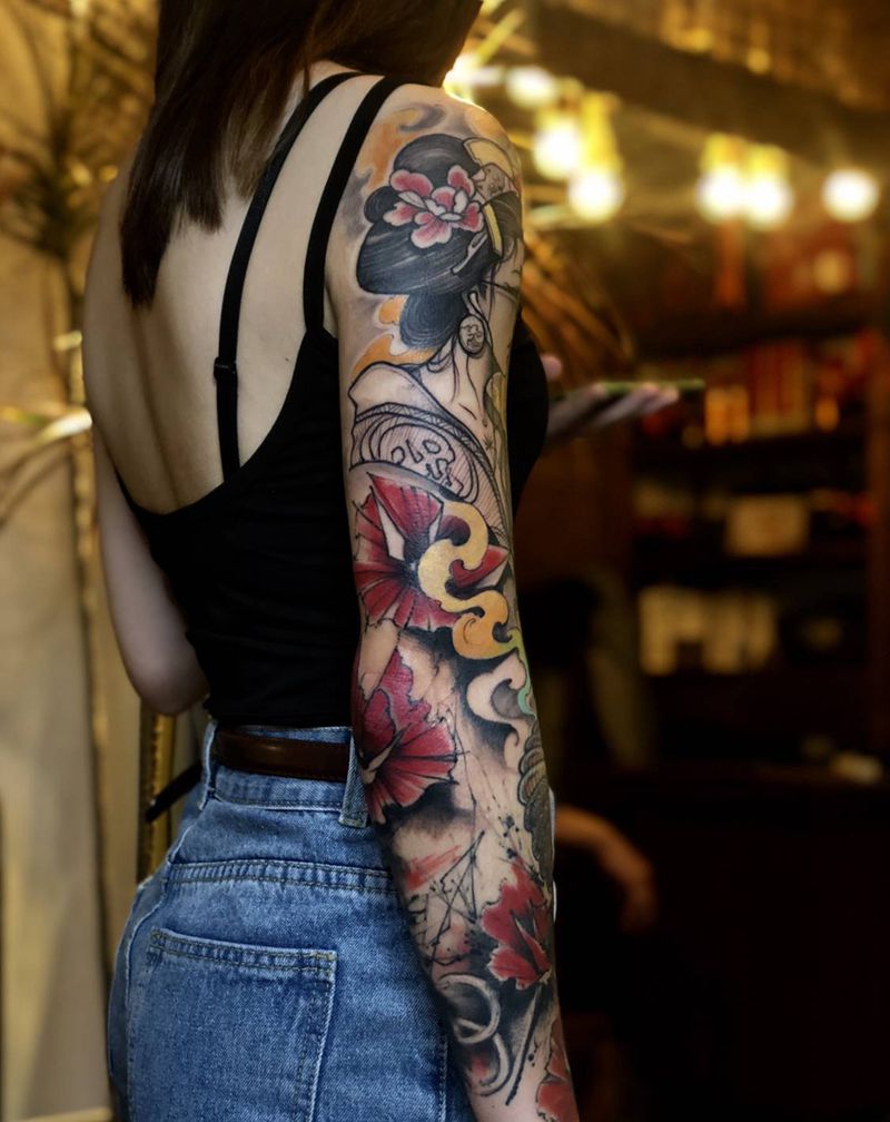 当前位置: 首页 >广东省广州市纹身店-東刺青纹身工作室纹身图案>艺妓狮子座♌️纹身图片_手臂New School点刺纹身图案