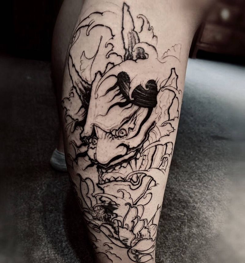 • T包小腿吹火男+阿多福纹身图片_腿部老传统新传统吹火男阿