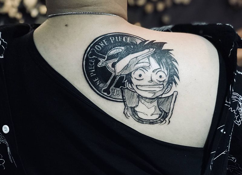 黑灰满背纹身图案