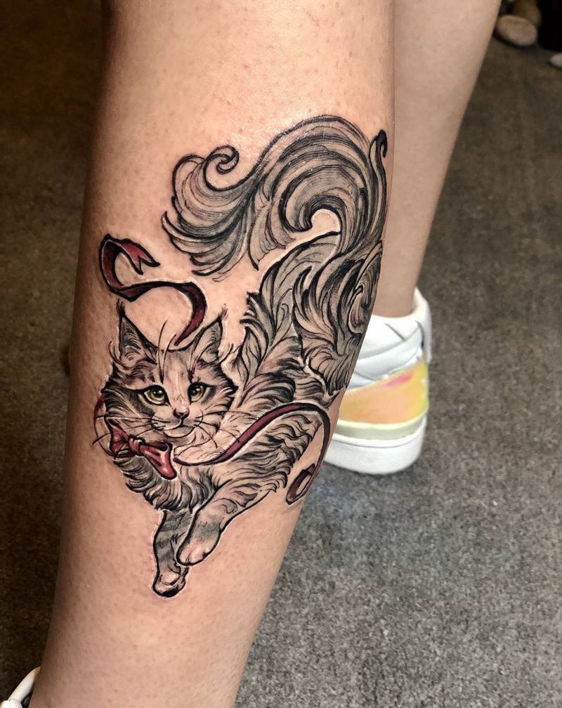 当前位置: 首页 >广东省广州市纹身店-東刺青纹身工作室纹身图案>缅因猫纹身图片_腿部New School点刺纹身图案