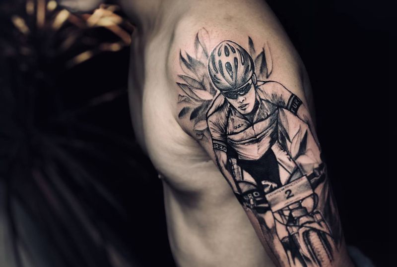 骑行者纹身图片_手臂点刺欧美写实纹身图案