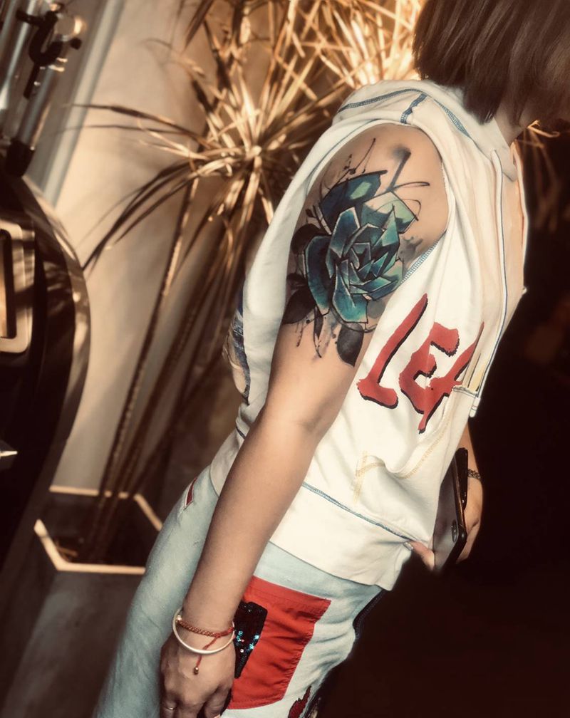 当前位置: 首页 >广东省广州市纹身店-東刺青纹身工作室纹身图案>旧图覆盖纹身图片_手臂点刺水彩纹身图案