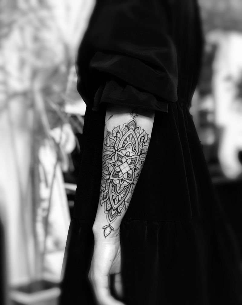 曼陀罗花纹身图片_手臂点刺几何纹身图案