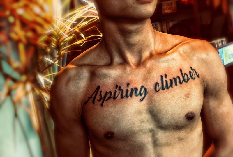 攀登者纹身图片_胸部花体字纹身图案