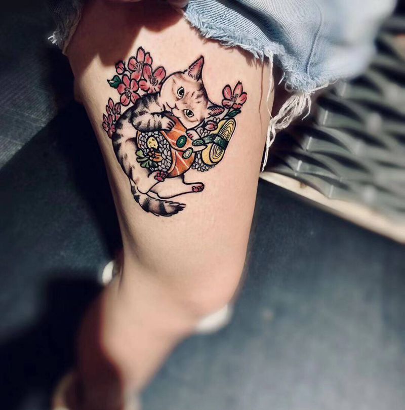 当前位置: 首页 >广东省广州市纹身店-東刺青纹身工作室纹身图案>小猫咪纹身图片_手臂New School点刺纹身图案