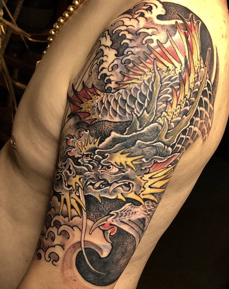 • T云龙九郎纹身图片_背部老传统云龙九郎纹身图案