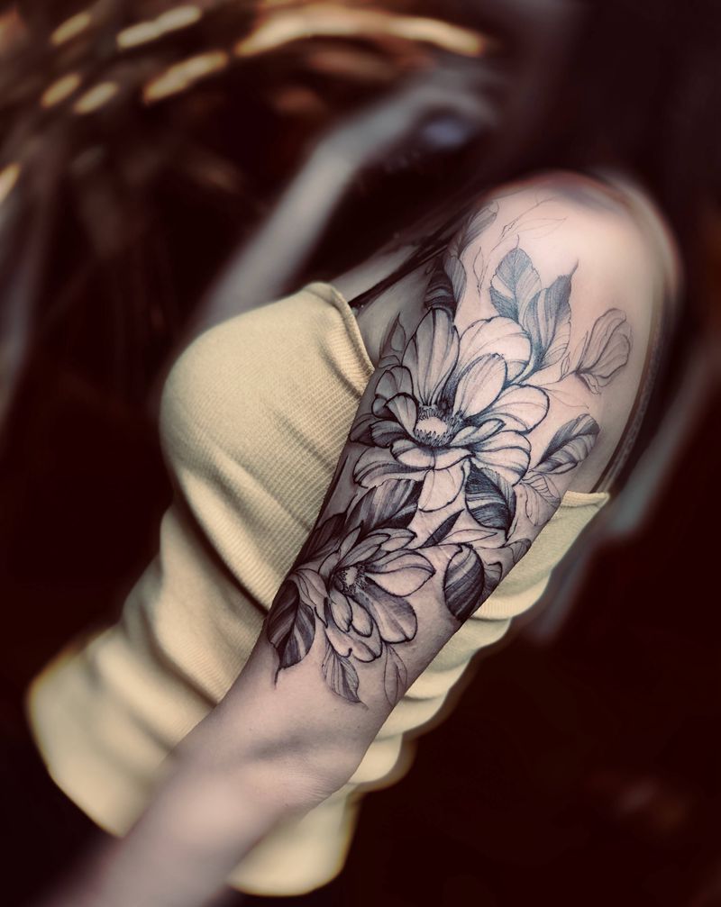 • 女性大花胸纹身_43张霸气漂亮的女性大花胸纹身图案作品